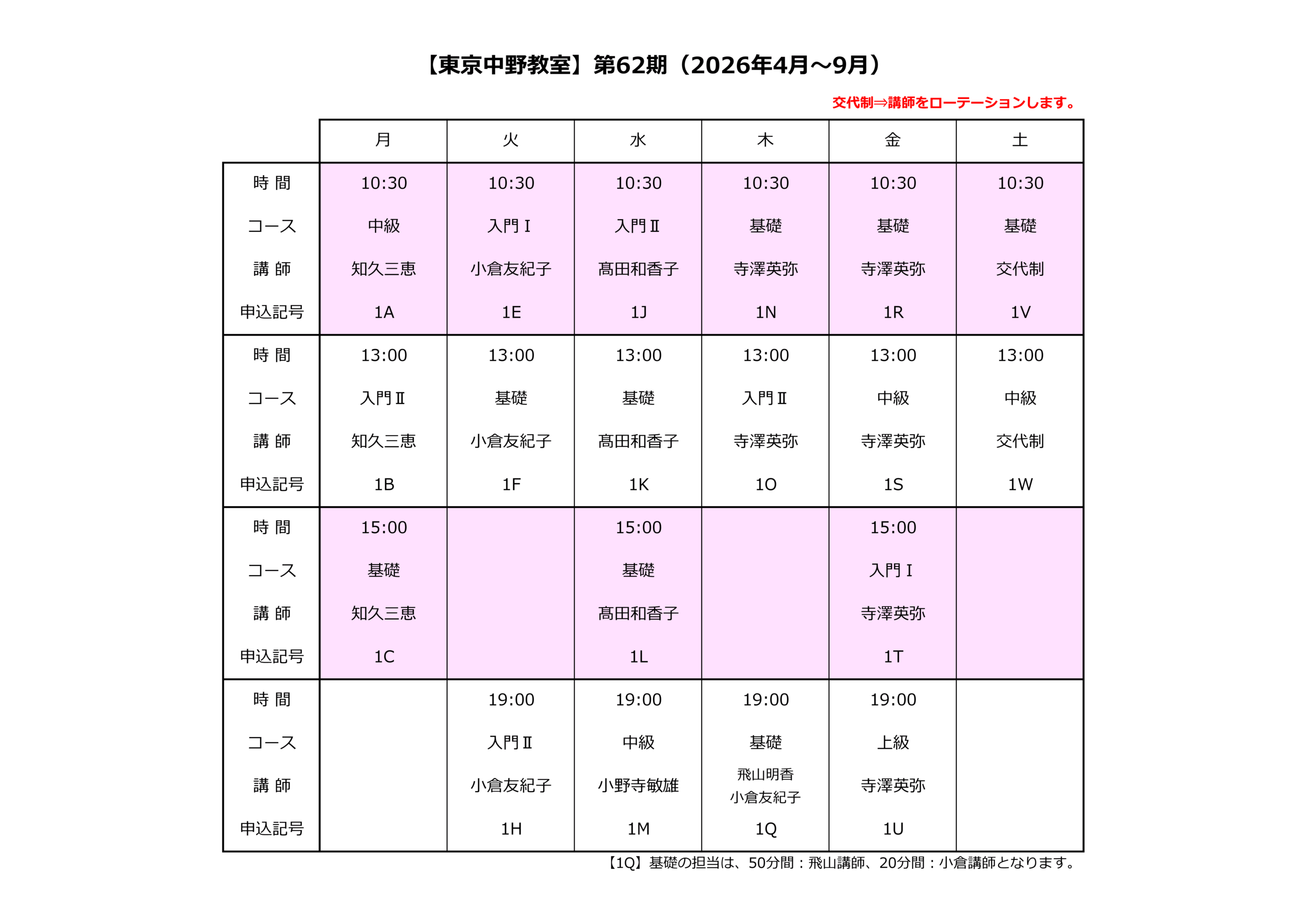 ※講座内容は毎期変更しています。(前期と後期が同じレベルの場合も同様です。)